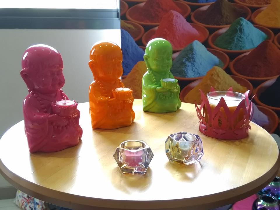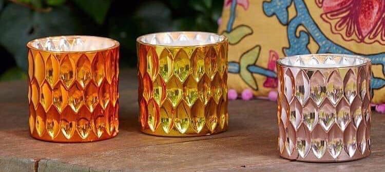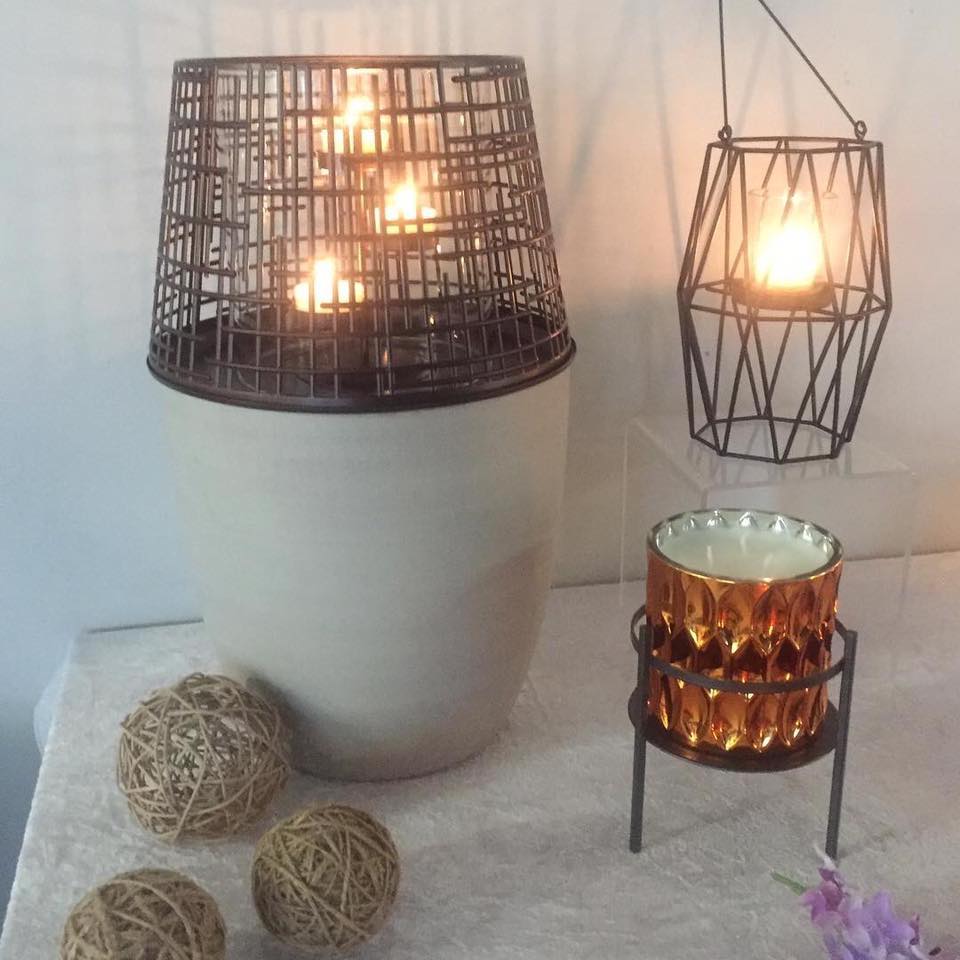 Lanterne et porte bougie à réchaud reflets d’arc en ciel